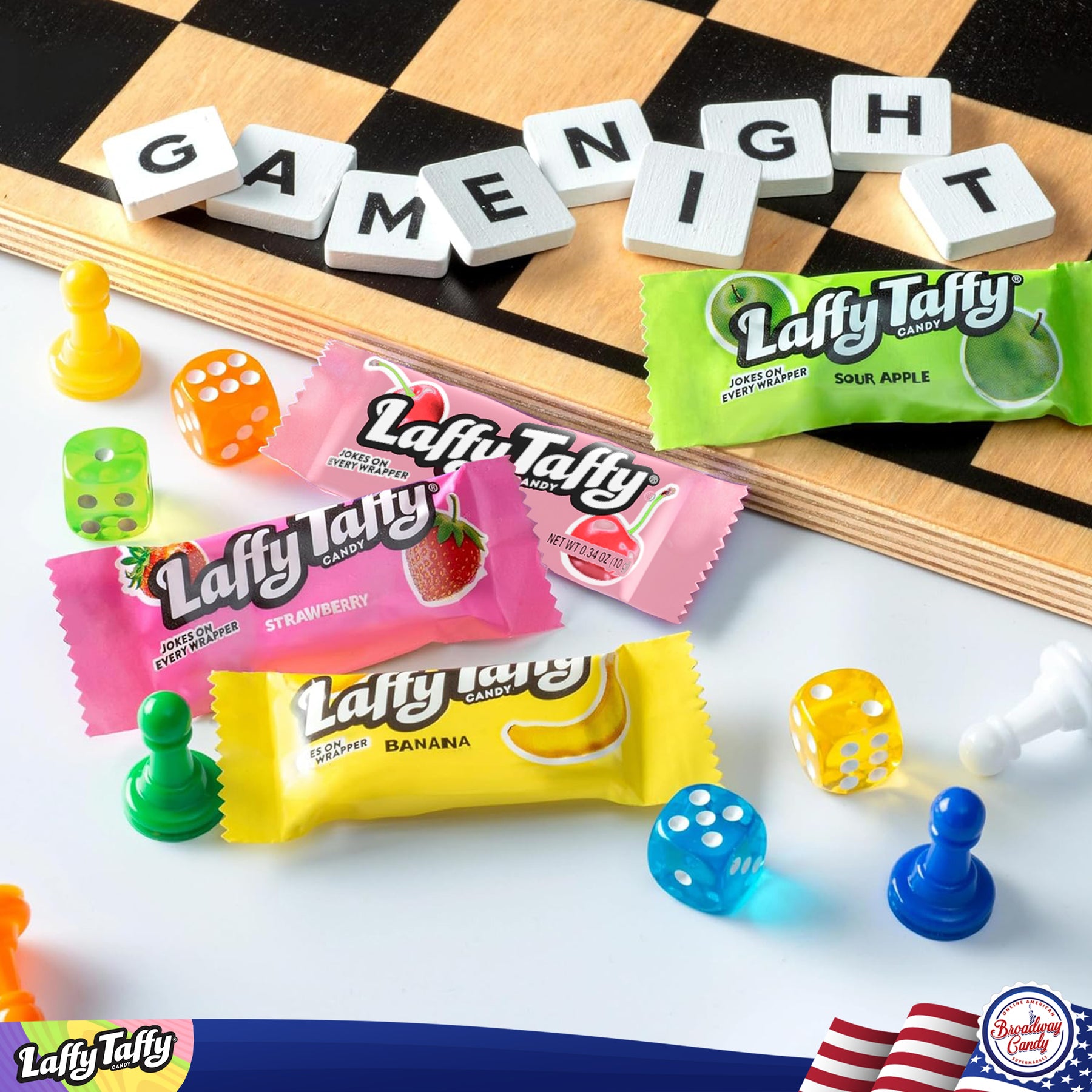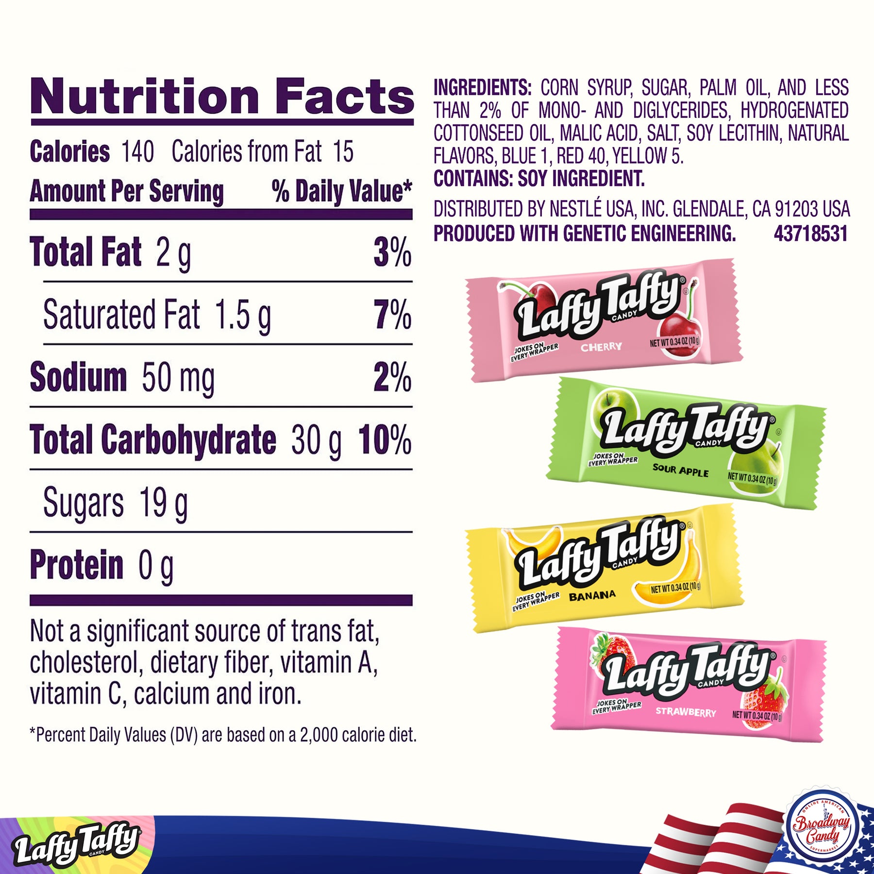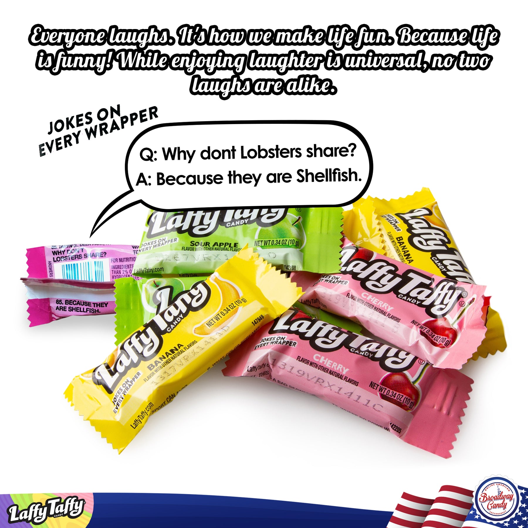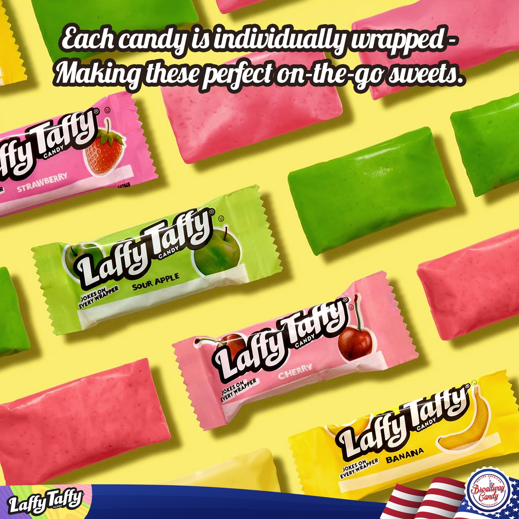 The laffy taffy is great, but we basically received a bag of cherry and banana. There was one solitary apple in the mix.